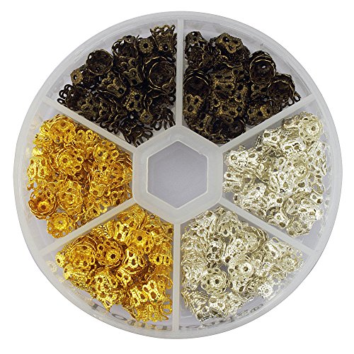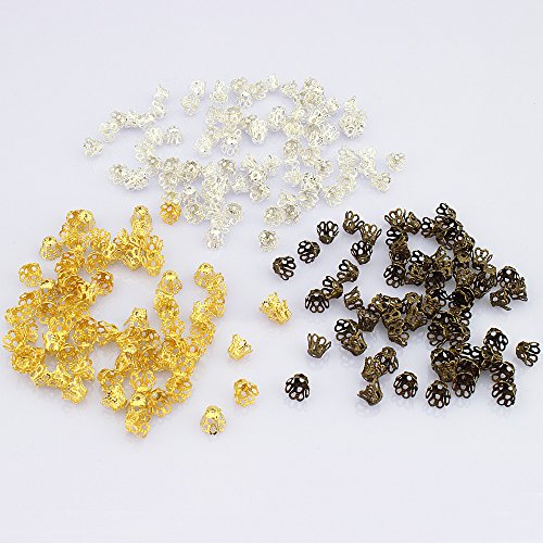 LolliBeads (TM) Filigree Flower Petal Cup Bead Caps 6 mm ,Gold/Silver and Bronze(300 Pcs)