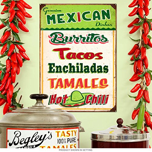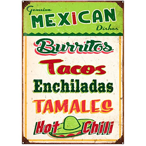 Genuine Mexican Dishes Restaurant Kitchen Metal Sign 12 x 16