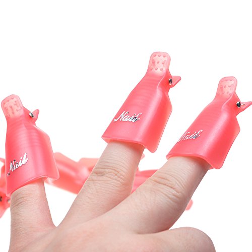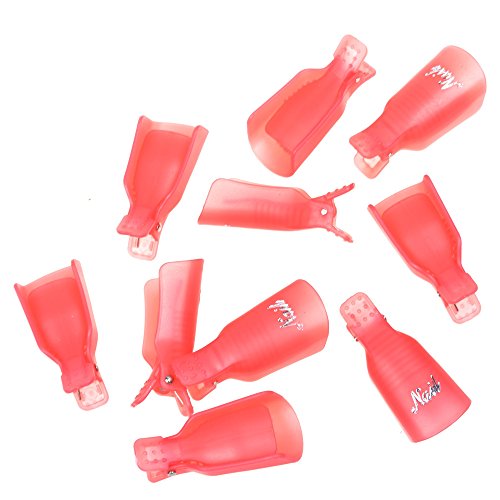 BCP Pack of 10pcs Plastic Nail Art Soak Off Cap Clip UV Gel Polish Remover Wrap Tool (Pink)