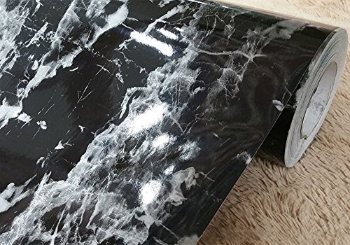 Faux Black Marble Contact Paper Self Adhesive Film Vinyl Granite Shelf Liner for Covering Counter Top Kitchen Cabinet (24''x78.7'')