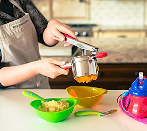 ✔ PERFECT FOR ALL DISHES...EVEN BABY FOOD: Moms & Dads, meet your new favorite kitchen tool. Not only does the URBAN DEPOT Potato Ricer enable you to make restaurant-quality meals, but it's also absolutely perfect for preparing your infant's and toddler's food. For harder vegetables and fruits, simply warm or boil first. For softer fruits and veggies, peel, if necessary, and place in the large mashing chamber and compress into a bowl. It even works well for refilling reusable food pouches!