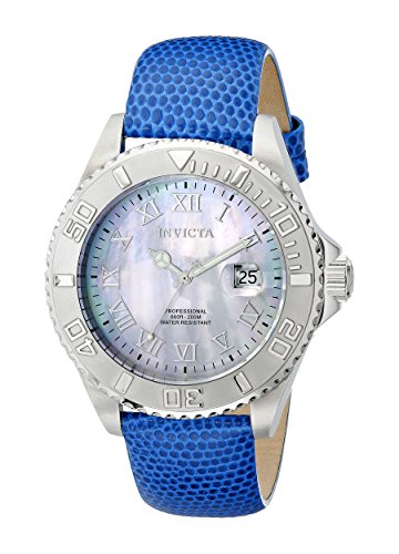 -. Binding : Watch -. Brand : Invicta -. Department : mens -. EAN : 0886678227242 -. Feature : Magnified date window at 3:00 / Platinum mother of pearl dial with silver tone and pale green hands and silver tone roman numerals; luminous; unidirectional stainless steel bezel; screw-down crown; mineral crystal; stainless steel case; blue leather strap / Swiss-quartz Movement / Case Diameter: 47mm / Water Resistant To 660 Feet -. Label : Invicta -. Manufacturer : Invicta -. Model : 18425 -. MPN : 18425 -. PackageQuantity : 1 -. PartNumber : 18425 -. ProductGroup : Watch -. ProductTypeName : WATCH -. Publisher : Invicta -. Studio : Invicta -. Title : Invicta Men's 18425 Pro Diver Analog Display Swiss Quartz Blue Watch -. UPC : 886678227242