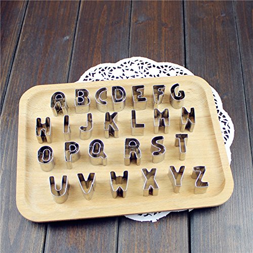 Cookie Cutter Set , Windspeed 26pcs Stainless Steel Alphabet Letters Biscuit Cookies Cutters Molds, Mini A-Z Shaped Mould Decorating Tool