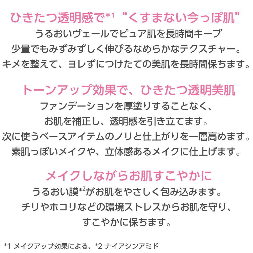After skin care, please take an appropriate amount at the beginning of the base makeup and stretch thinly to the whole face.