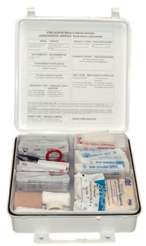 -. Binding : Misc. -. Brand : Pac-Kit -. Color : WHITE -. EAN : 0738743060882 -. Feature : 50-person, 165-piece first aid kit for treating minor injuries / Weather-resistant plastic case is OSHA compliant for quality assurance / Can be wall-mounted or carried with attached handle / Contents inside box may be substituted with equivalent products in different brand names / Measures 10.5 x 10 x 3 inches (H x W x D) -. Label : Acme United -. Manufacturer : Acme United -. Model : 6088 -. MPN : 6088 -. NumberOfItems : 1 -. PackageQuantity : 1 -. PartNumber : 6088 -. ProductGroup : BISS -. ProductTypeName : LAB_SUPPLY -. Publisher : Acme United -. Studio : Acme United -. Title : Pac-Kit by First Aid Only 6088 165 Piece #50 ANSI First Aid Kit, Weatherproof Plastic Case -. UPC : 738743060882 -. Warranty : Manufacturer