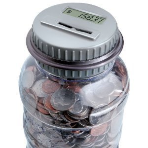 - Feature : The auto count digital coin bank features a large capacity money jar with removable lid / Accepts all US circulated coins including pennies, nickels, dimes, quarters, and silver dollars / Digital LCD automatically keeps track of savings