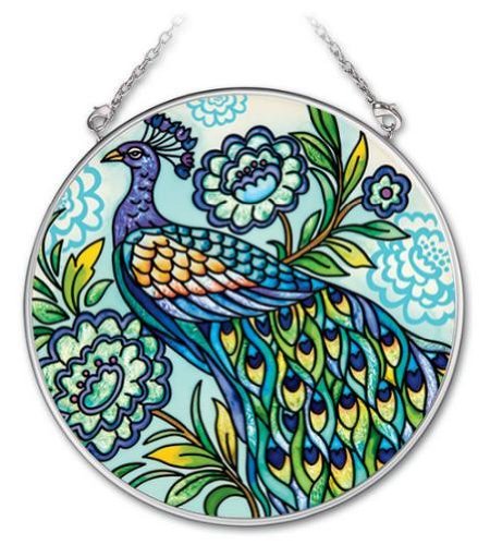 Amia 4-1/2-Inch Circle Hand-Painted Glass Suncatcher, Decorative Peacock, Medium