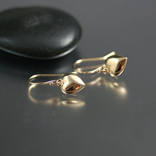 -. Title : 14k Gold Puffed Heart Earrings on 14k Gold French Earwires by Jill McCrystal Jewelry