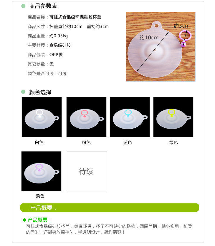 可挂式防尘防漏杯盖环保硅胶杯盖简约创意圆圈杯子盖密封水杯盖子