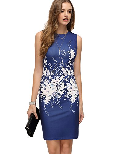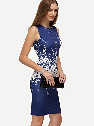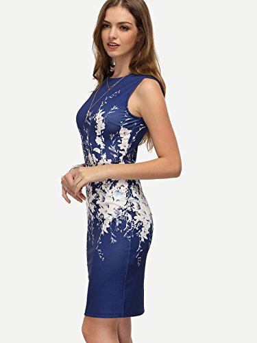Title : Floerns Women's Floral Print Sleeveless Split Cocktail Party Bodycon Dress Blue White S