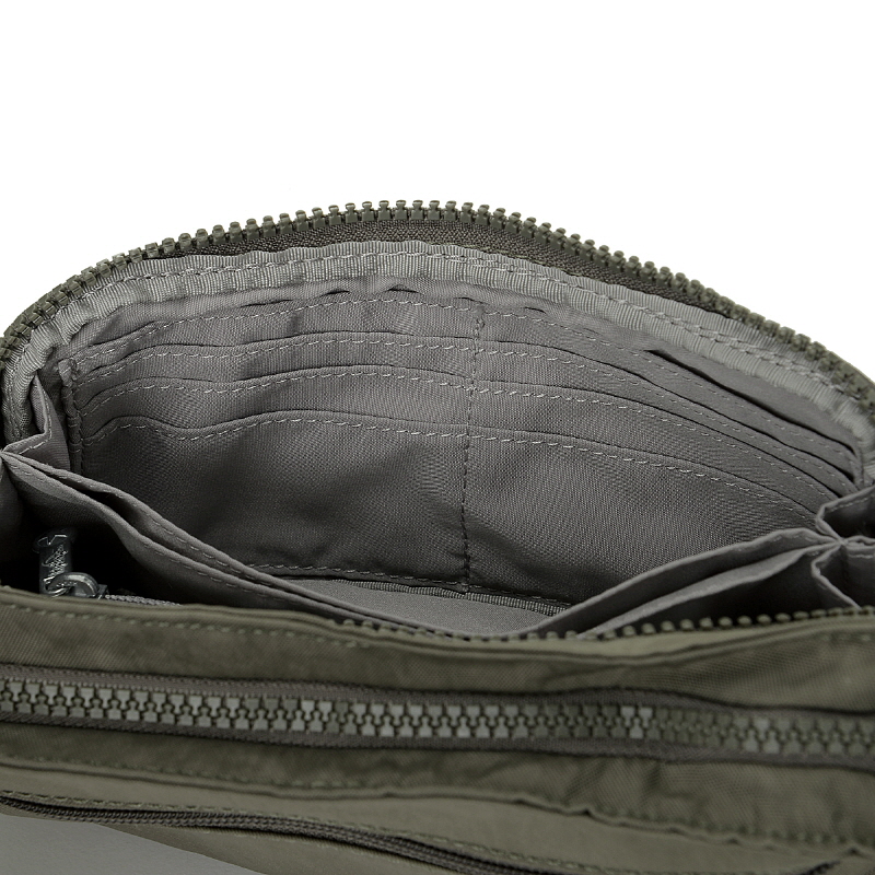 전면 지퍼 포켓에는 지갑 대신 사용이 가능한 카드 수납 공간과 지폐 및 영수증을 보관할 수 있는 공간이 디바이더로 나누어져 있으며,