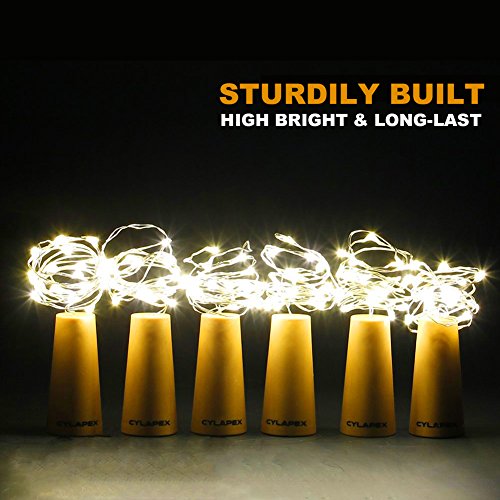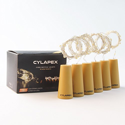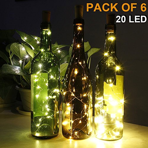 CYLAPEX Pack of 6 Wine Bottle Lights, with 20 LEDs on 3.3FT Copper Wire, Fairy Lights String with Cork for Wine Bottle DIY, Wedding, Party, Christmas, Halloween, LED Decor or Night Lights, Warm White
