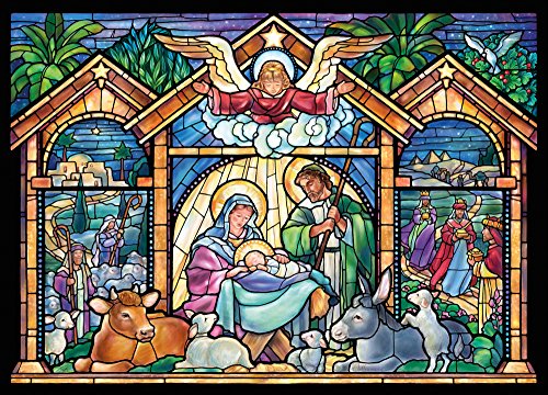 Stained Glass Nativity Religious Christmas Cards - Box of 15