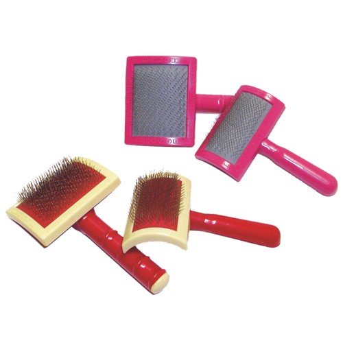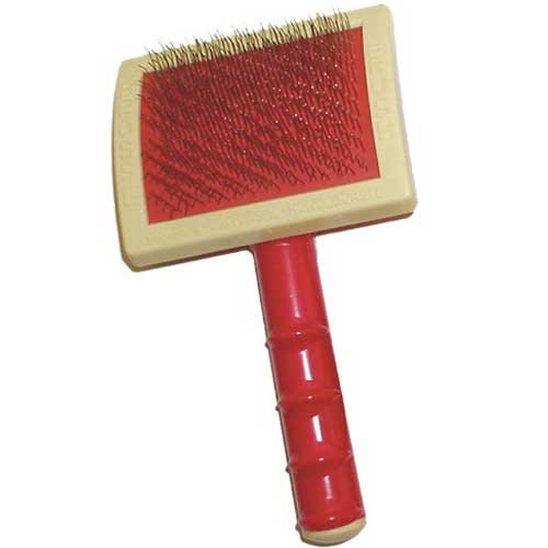 Product Description The Large Original Universal Curved Slicker Brush from Frank's is HEAVY DUTY and designed for use by the professional to remove excess hair and undercoat from large to giant size breeds.