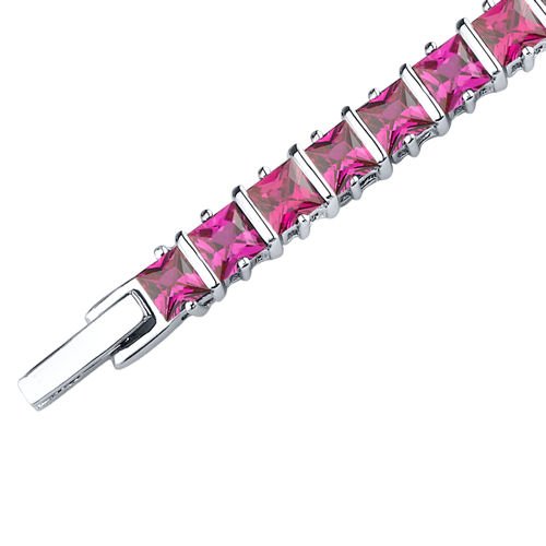 -. Title : Created Ruby Bracelet Sterling Silver P.R.Incess Cut