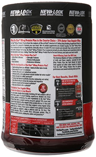 -. Binding : Health and Beauty -. Brand : Six Star -. EAN : 0631656701869 -. Feature : Scientifically shown to build 70% more muscle / Core ingredients scientifically superior to regular whey protein / Award-winning taste you will love / Boost strength and support recovery / Perfect for before and after your workouts -. Label : Iovate Health Sciences Incorporated -. Manufacturer : Iovate Health Sciences Incorporated -. NumberOfItems : 1 -. PackageQuantity : 1 -. ProductGroup : Pantry -. ProductTypeName : HEALTH_PERSONAL_CARE -. Publisher : Iovate Health Sciences Incorporated -. ReleaseDate : 2015-07-09 -. Studio : Iovate Health Sciences Incorporated -. Title : Six Star Pro Nutrition Elite Series Whey Protein Powder, Triple Chocolate, 2 Pound -. UPC : 631656701869