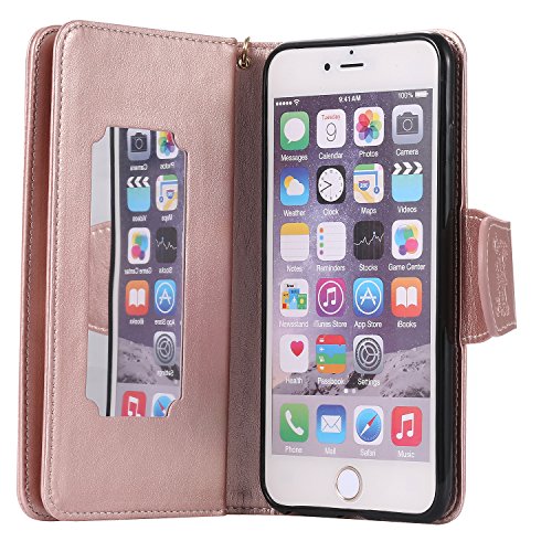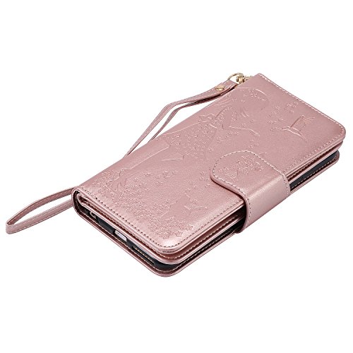 iPhone 6S Plus Case,iPhone 6 Plus Case,ikasus Embossing Flower Girl Cat Birds PU Leather Fold Wallet Pouch Flip Stand Credit Card ID Holders Case Cover for iPhone 6S Plus / 6 Plus (5.5"),Rose Gold