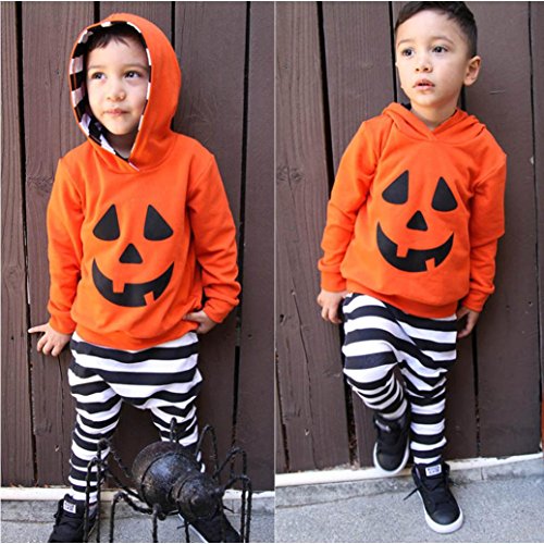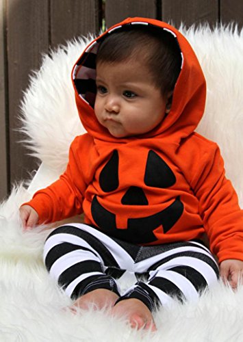 -. Title : Infant Baby Boy Girls Halloween Pumpkin Hooded Blouse +Stripe Pants Halloween Outfits Set by CSSD