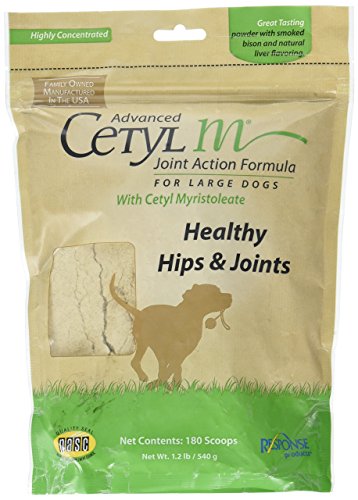 -. Binding : Misc. -. Brand : Response -. EAN : 0686960425321 -. Feature : Formulated to support and sustain joint health in large dogs / May help to ease aches and discomfort from training and competition / Smoked bison and natural liver flavored granules -. Label : Lambriar Vet - Dropship -. Manufacturer : Lambriar Vet - Dropship -. Model : 25321 -. MPN : 25321 -. NumberOfItems : 1 -. PackageQuantity : 1 -. PartNumber : 25321 -. ProductGroup : Pet Products -. ProductTypeName : PET_SUPPLIES -. Publisher : Lambriar Vet - Dropship -. Size : 540 grams -. Studio : Lambriar Vet - Dropship -. Title : Response Cetyl M Joint Action Formula for Large Dog, 180 Scoops -. UPC : 686960425321