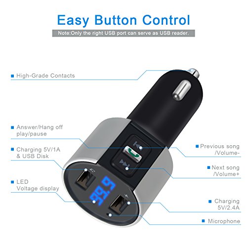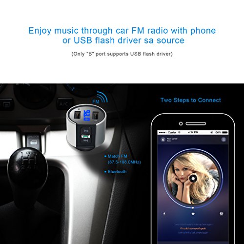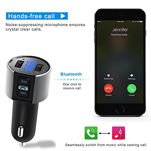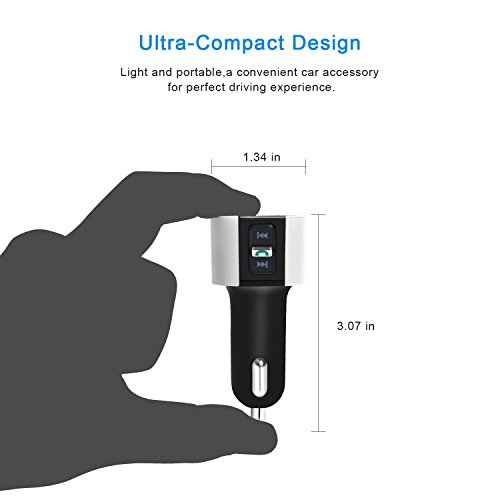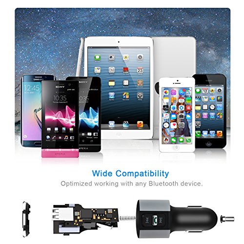 - WIDE COMPATIBILITY: Bluetooth Car FM Transmitter can be paired as a hands-free kit with all Bluetooth enabled devices, such as iPhone, iPad, Tablet, Samsung, HTC, Sony and other Andriod Smartphones; Stream music and calls directly from your mobile devices to car stereo system via FM radio signal( 87.5-108.0MHz).