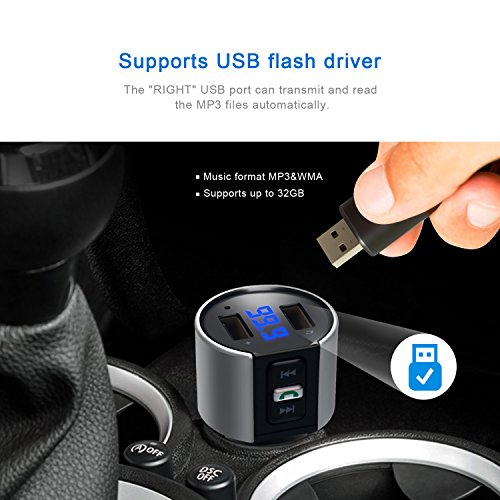- PAIR IN SECONDS: Just plug the optimum Bluetooth FM Transmitter into the car cigarette lighter, tune the car radio to the same frequency (range from 87.5 to 108 MHz). Then let your phone/audio player pair it via Bluetooth/ USB flash driver.