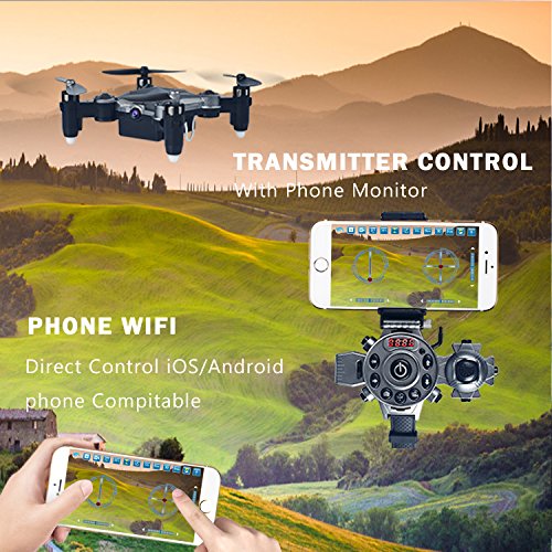 >Function: Track Flight/360-degree Rolling Over/Headless Mode/LED Lights/ Speed Mode/One Key Automatic Return/Altitude Hold/FPV/VR/Mode/Gravity sensing mode/ A key to take off and land .