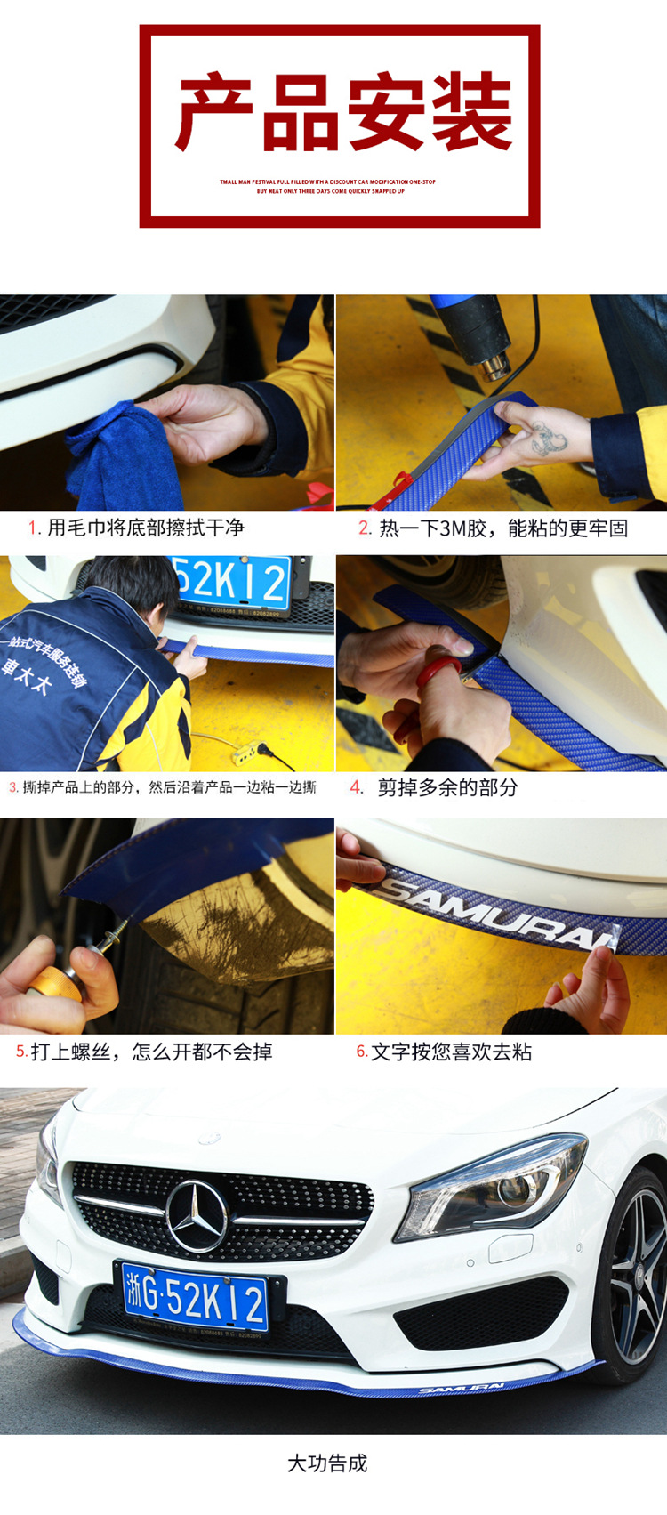 【产品功能】:汽车前唇、侧裙保护 放刮擦