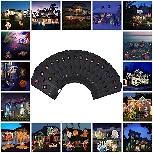 ★16 PCS EXCLUSIVE DESIGN SLIDES PATTERNS: Include 16 Exclusive Design Switchable Pattern: Christmas, Halloween, Thanksgiving Day, White Snowflake, Clown, Love, Oceans animals, Birthday, Moon&Star, Summer Beach, Mushroom snail, Ladybug, Clover, Candy. Ideal for interior and exterior walls, landscapes, dance floors and more Celebration Series Projection Light Designs for every occasion!