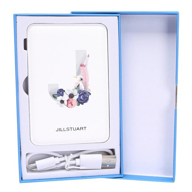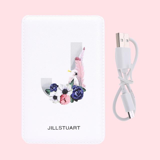 화이트 배경에 J 로고 플라워 프린트가 포인트인 보조배터리입니다.