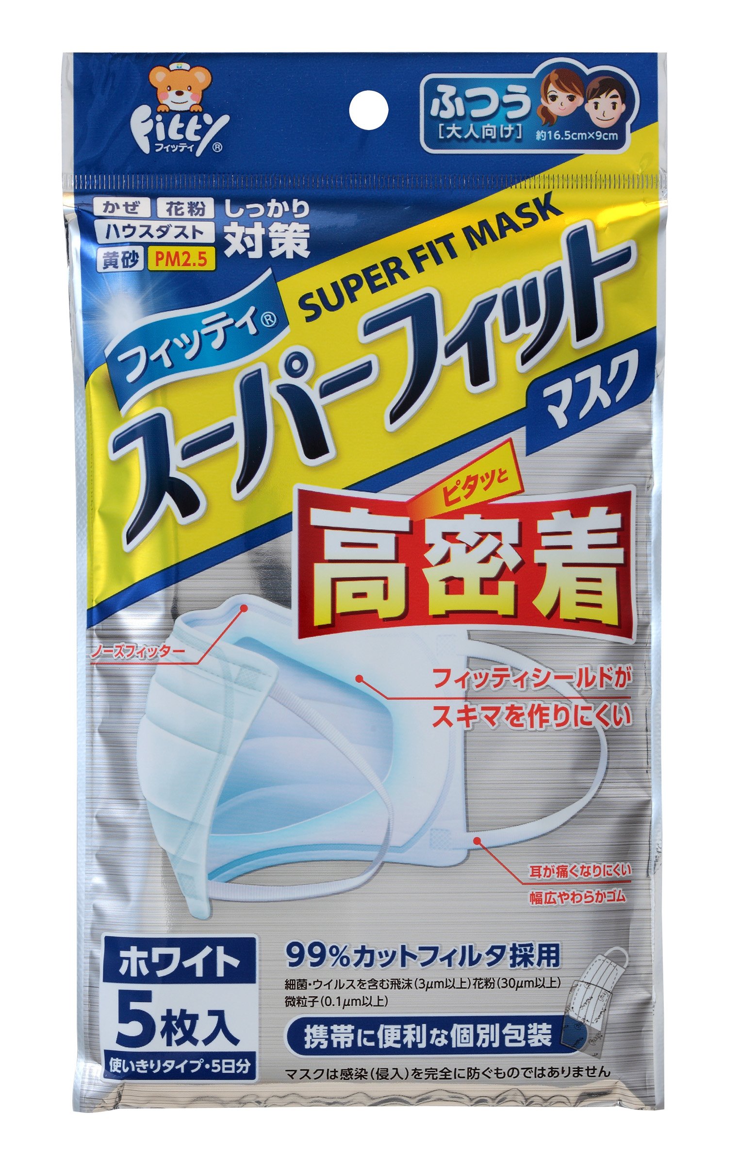 Fittings super fit mask normal size white 5 pieces