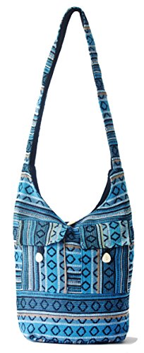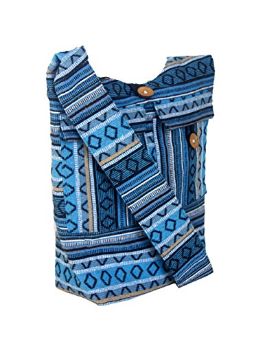 This bag is handmade 100% cotton fabric, its handloom weaved cloth , environment friendly. Light weight(330 gram) but very durable. Cool simple design and Multi-functional use. Because of self design in cloth not as much as perfect just like printed or industrial made cloth. Design of button can be change because of tie it randomly.multi-functional use according to your personality(unisex) just by change the color.Use as a school bag, travel bag, college bag, shopping bag, beach bag, travelling bag, tracking bag, artist office bag etc. You never got disappointed after using this type of shoulder bag. Many things can carry at a time. handloom cloth. Stithed propoerly.Feature