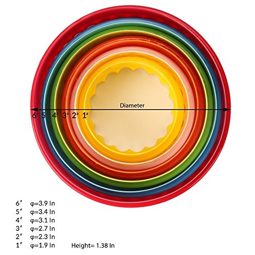 -. Brand : Pparty -. Feature : Create and decorate fun shapes of cookies, biscuits, cakes & pastry / Perfect for Parties, Gatherings, Birthday, Halloween, Thanksgiving, Christmas, Baby showers, fundraising, and Classroom projects etc. / Besides Baking, cookie cutters also in countless creative ways: Mini cakes, Sandwich Shapes, Fruit Salads, Desert Shapes / Each shape of cookie cutter can 'nest' inside each other for efficient storage / Made from food safe & child friendly plastic with no sharp edges -. ProductGroup : Kitchen -. ProductTypeName : KITCHEN -. Title : Pparty Two Sided Round Cookie Cutters and Biscuit Cutter Set (6 pc) Different Sizes and Assorted Colors