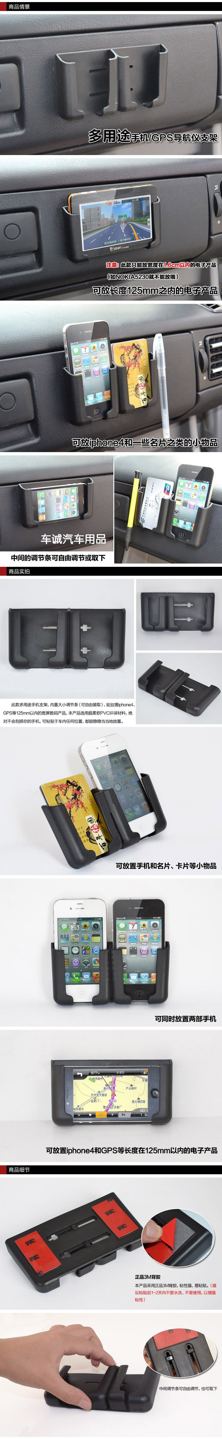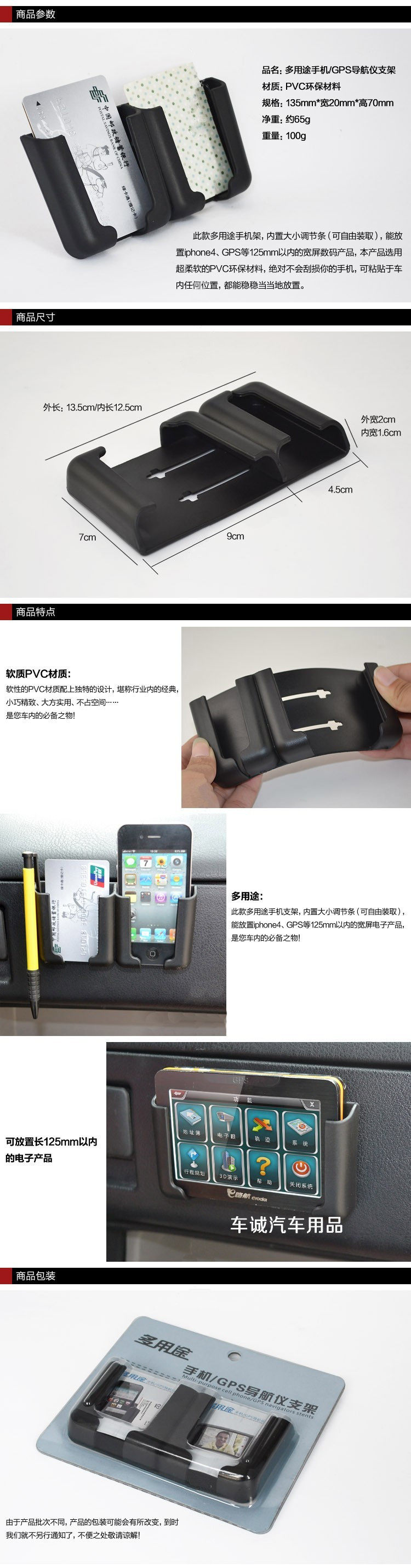 The versatile phone holder, built-in adjustment bar (can be freely installed to take), can be placed iphone4, GPS and other digital products 125mm wide or less, this product is made of ultra-soft PVC environmentally friendly materials, will not scratch your phone, you can paste the car anywhere in, surely, can be placed.