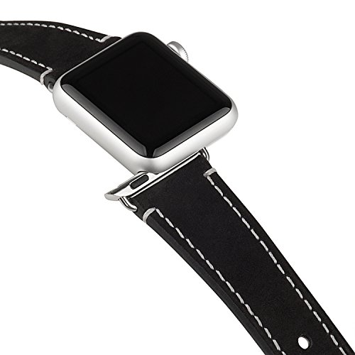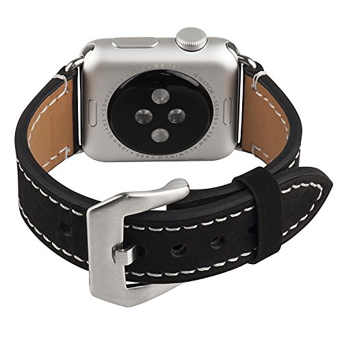 Apple Watch Band, AUCEE 42mm iWatch Band Strap Premium Crazy Horse Genuine Leather Watchband with Stainless Metal Adapter Clasp Replacement Wrist Band for Apple Watch Sport Edition Series 1 2- Black