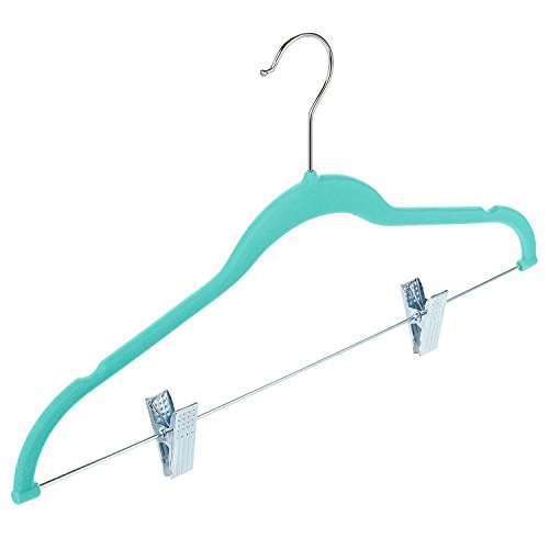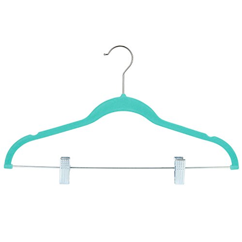 24 Pack Adult Clothes Velvet Hangers with Clips Teal Ultra Thin No Slip 17.5" x 0.2" x 9.5"