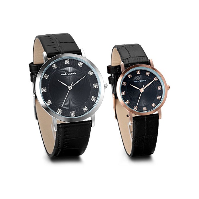 JewelryWe 발렌타인 데이 사랑의 증명에:클래식 심플 맨즈 레이디스 스탠다드 비지니스,로마숫자 앤틱 레트로 문자판,아날로그 표시 날짜 표시 쿼츠 손목시계,컬러:블랙