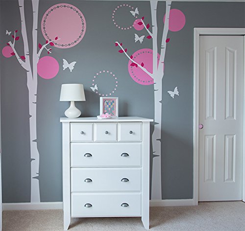 ReleaseDate : 2015-10-12 Studio : Pop Decors Publisher : Pop Decors Binding : Baby Product Product Description High quality wall art product by Pop Decors, creates hand painted look on your wall. Free squeegee. [Size] Trees: 1st: 23"(59cm)W 102"(260cm)H; 2nd : 26"(66cm)W 102"(260cm)H; The biggest circle: 21"(53cm) H 21"(53cm) W, [Default Colors]Tree trunk and butterflies: All in White; Leaves: Hot pink; Big Circle with two small circles: Light pink; Other Five circles: Pink. Decals can be applied on smooth and clean surface (walls, glass, doors etc.). Do not use on textured walls (orange, sandy and grainy), fresh paint (less than 14 days) and low VOC (Volatile organic compound) paint. Original designs by Pop decors. 2010 Copyrights Protected. 0