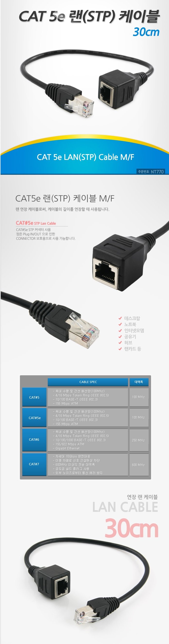 LAN LAN extended LAN cable STP 30cm coupler type