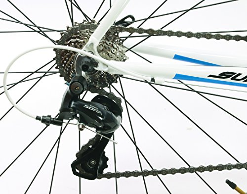 Studio : Sundeal Publisher : Sundeal Binding : Misc. Product Description SUNDEAL R9 ROAD BIKE NEW IN BOX / MSRP $649 / SHIPS IN 24HRS SPECIFICATIONS: Brand: Sundeal Model: R9 Weight: 22.25lbs (size 50cm) Condition: New in box? Note: Green model shown in the general overall ad. Click on the other models in the drop down box to see the other colors. COMPONENTS: Frame: Tig Welded 6061 Aluminum, T6 Heat Treated, with waterbotle mounts Fork: Aluminum, 1-1/8" straight Rims: Sundeal 700c, Double Wall, Presta valve drilling, Clincher - tubed Headset: Unbranded, integrated style Hubs: Aluminum, QR axles, Ball/Cone type bearings Tires: Kenda , Clincher - tubed, Wire Bead, 700 x 23, 110psi max Shifters: Shimano Sora 2 x 9 speed, brake levers integrated into shifters Front derailleur: Shimano Sora Double Rear derailleur: Shimano Sora 9s Handlebar: Sundeal alloy, 420mm width Crankset: unbranded, Compact Road Square taper, 170mm, 50/34T Cassette: Shimano 9 speed Pedals: None Chain: KMC Z 9 speed Bottom bracket: Square taper, sealed Spokes: black coated with brass nipples Stem: Sundeal Alloy, 90mm Saddle: Sundeal Seatpost: Sundeal Alloy Seatpost clamp: Alloy Brakes: Tektro road ABOUT THE MANUFACTURER: These bikes are made by Ideal, one of the largest bicycle manufacturers in the world. They supply and manufacturer bikes for a number of many famous brands that you likely know. Sundeal is their house brand. These are of the same high quality as the aforementioned brands. GEOMETRY CHART: All dimensions are in millimeters or degrees, except where otherwise specified Size 48cm 50cm 52cm Seat Tube, Center to Top (A) 480 500 520 Effective Top Tube (B) 540 550 560 Effective Top Tube (in) (B) 21.3 21.7 22.2 Head Tube Length (C) 155 165 175 Seat Tube Angle (D) 73 73 73 Headtube Angle (E) 71 73 73 Chainstay L 0