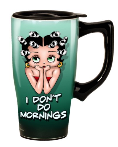 -. Title : Betty Boop I Don't Do Mornings Travel Mug, Green