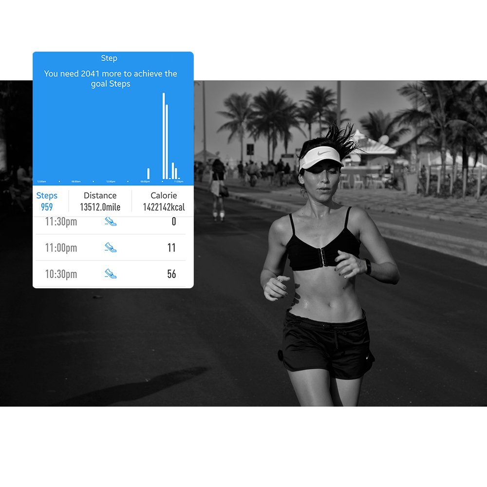 Performing real-time heart rate measurement automatically, the heart beat data of the day wearing and the state are obvious at a glance.