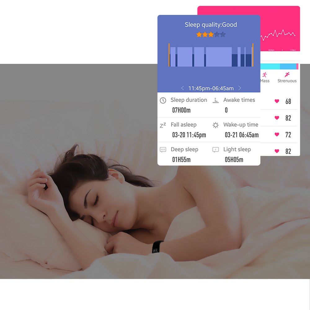 Also, after setting the sleeping time with the application, the watch can automatically test the sleep data during the sleep period.