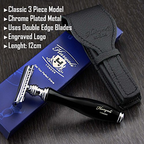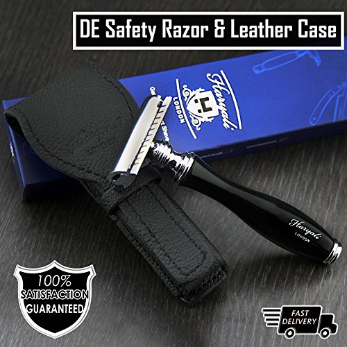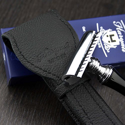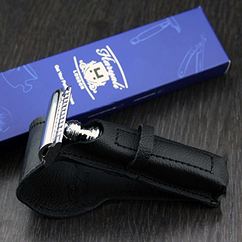 Men's Shaving Classic DE Safety Razor in Black & Genuine Leather Protective Pouch (Blades Not Included) | Men's Shaving & Grooming > Gents Travel...