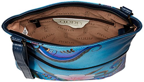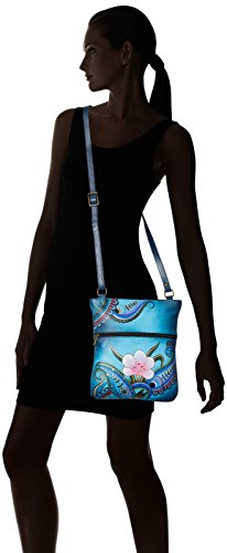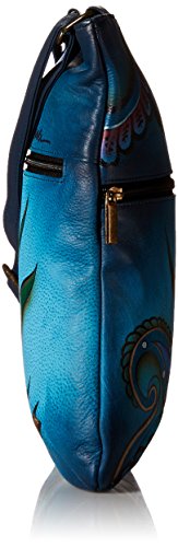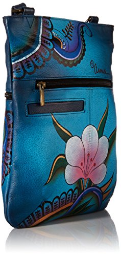 Anuschka Handpainted Leather 8071-DPF Slim Cross Shoulder Bag, Denim Paisley/Floral, One Size
