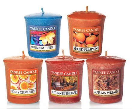 Studio : Yankee Candle Publisher : Yankee Candle Binding : Kitchen Product Description What a great way to have all of your favorite autumn fragrances in one package. Included are 10 Samplers Votive Candles; 2 of each: Honey Clementine, Autumn in the Park, Autumn Wreath, Autumn Gathering, and Spiced Pumpkin. 0