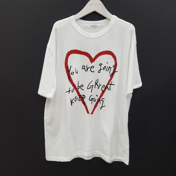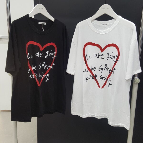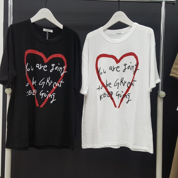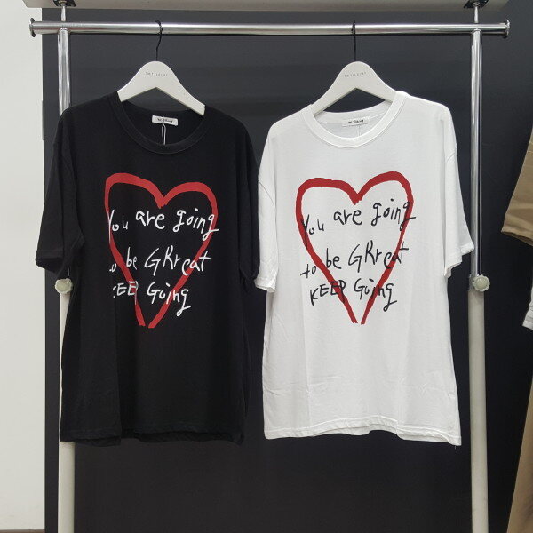 큐티한 하트 모양 오버핏 티셔츠입니다 ?선 덥는길이라 편하게 착용가능합니다