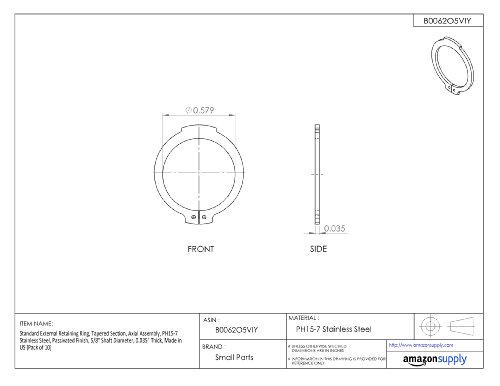 Standard External Retaining Ring, Tapered Section, Axial Assembly, PH15-7 Stainless Steel, Passivated Finish, 1/32" Shaft Diameter, 0.025" Thick, Made in US (Pack of 10)