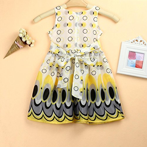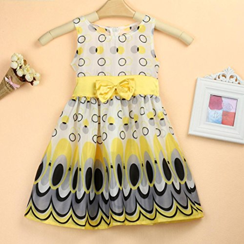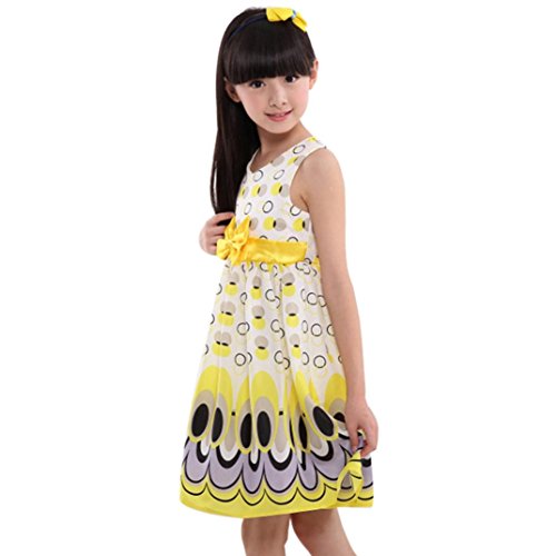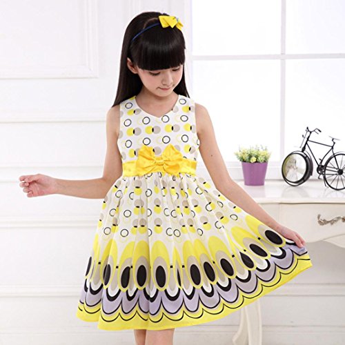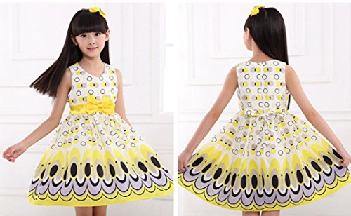 (Dacawin)/Kids' Furniture Room Decor/Armoires, Chests Dressers/DIRECT FROM USA/Dacawin(TM) Kids Girls Bow Belt Sleeveless Bubble Peacock Dress Party Clothing (L, Yellow)