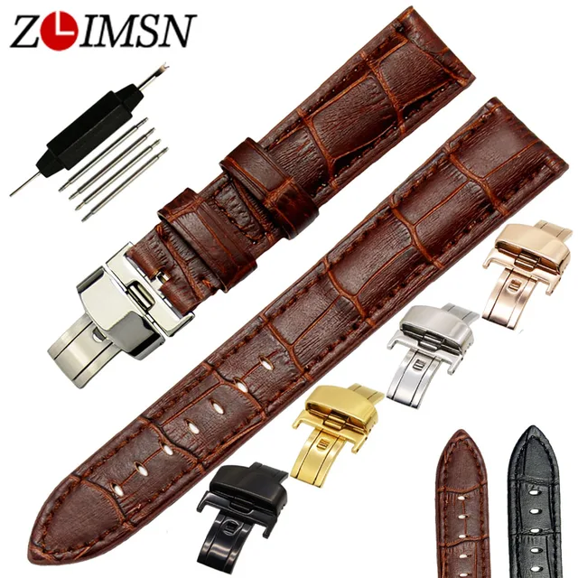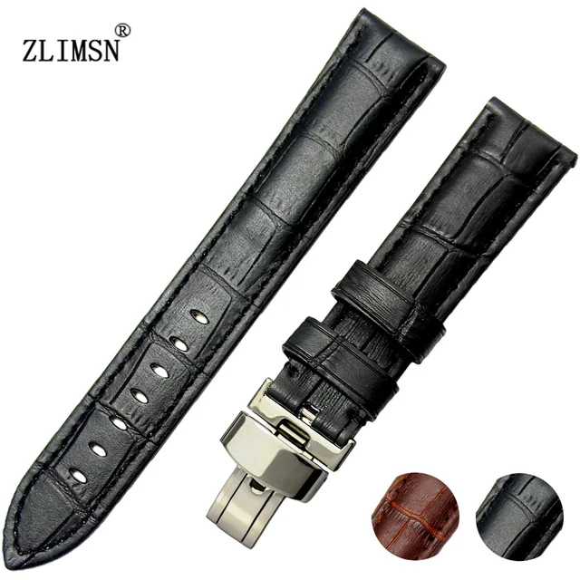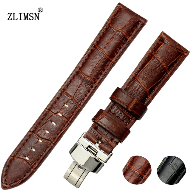 ZLIMSN 브라운 블랙 손목 18 20 22 24 26 미리메터 시계 스트랩 대나무 곡물 벨트 실버 골드 금속 버클 액세서리 시계 TG108
