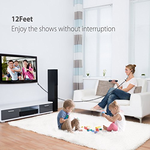 KEIN VERLANGERUNGSKABEL BENOTIGT: Teilen Sie einfach Ihre Musik mit Freunden und benutzen Sie die Ohrhorer mit Ihrem Fernseher, Laptop oder Computer vom Sofa aus - Dank dem super langen Kabel der Kopfhorer (5m)